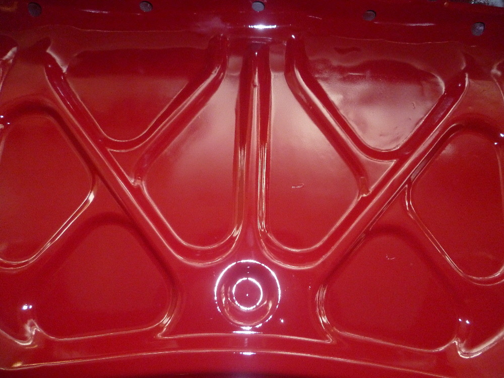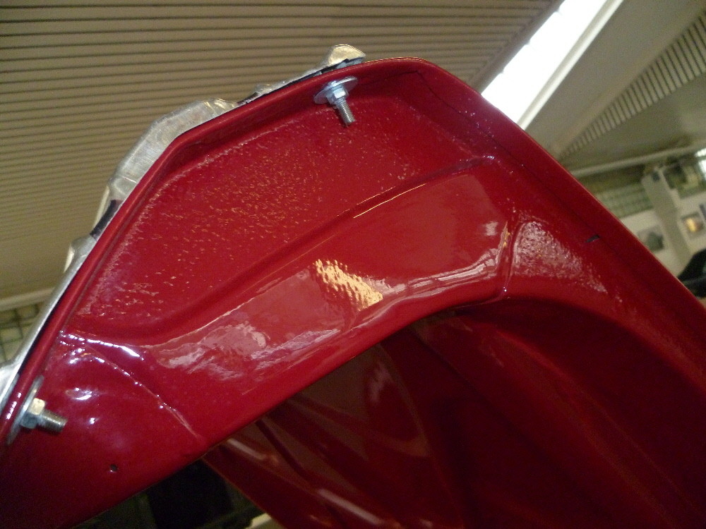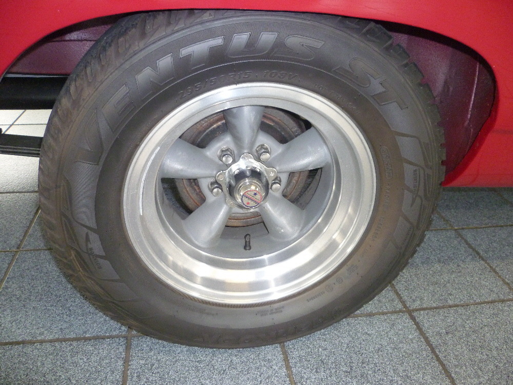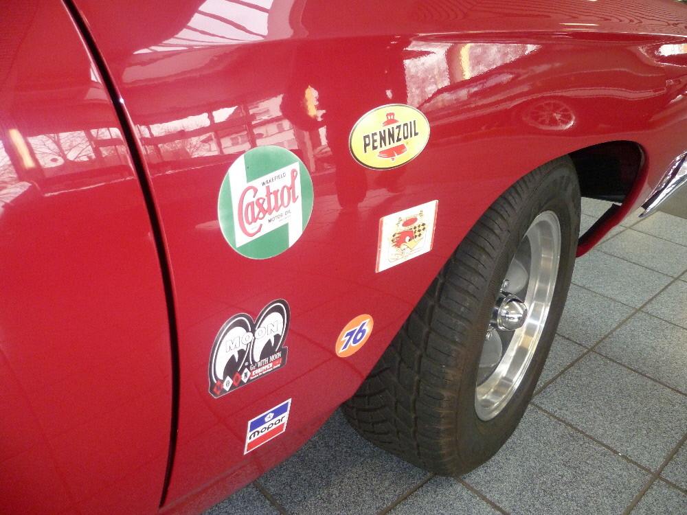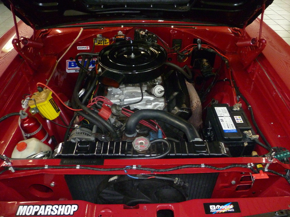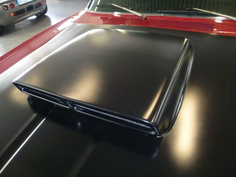 Exterieur: Im Zuge der Restauration wurde der Satellite komplett lackiert. Das Finish ist auch gemäß deutscher Maßstäbe hervorragend. Kaum ein Detail wurde übersehen (siehe Fotos). Ebenso ist der Unterboden lackiert. Der Plymouth steht auf eingetragenen American Racing Torq Thrust Felgen in 15 Zoll mit 295er Reifen hinten. Die schwarze Haube mit großem Air Intake verleiht dem Fahrzeug zusammen mit dem schwarzen Grill eine aggressive Front. Der Chrom ist im unbelassenen, guten Zustand.