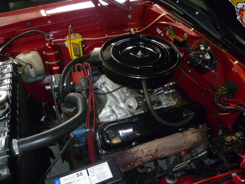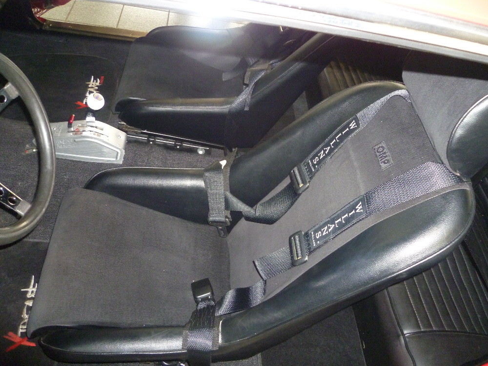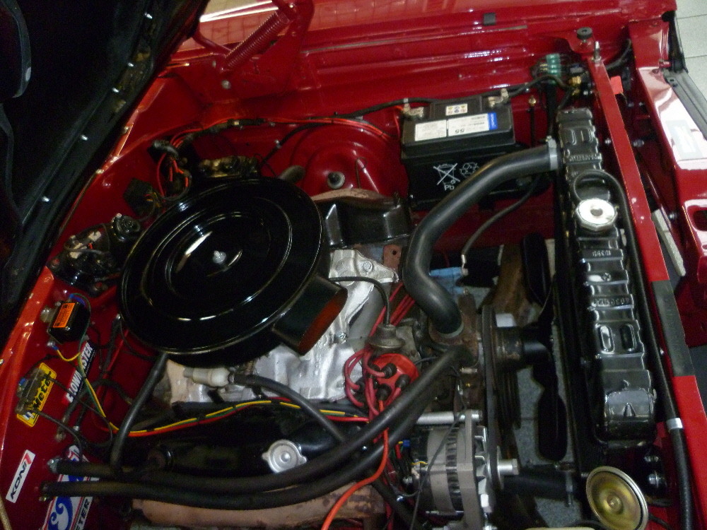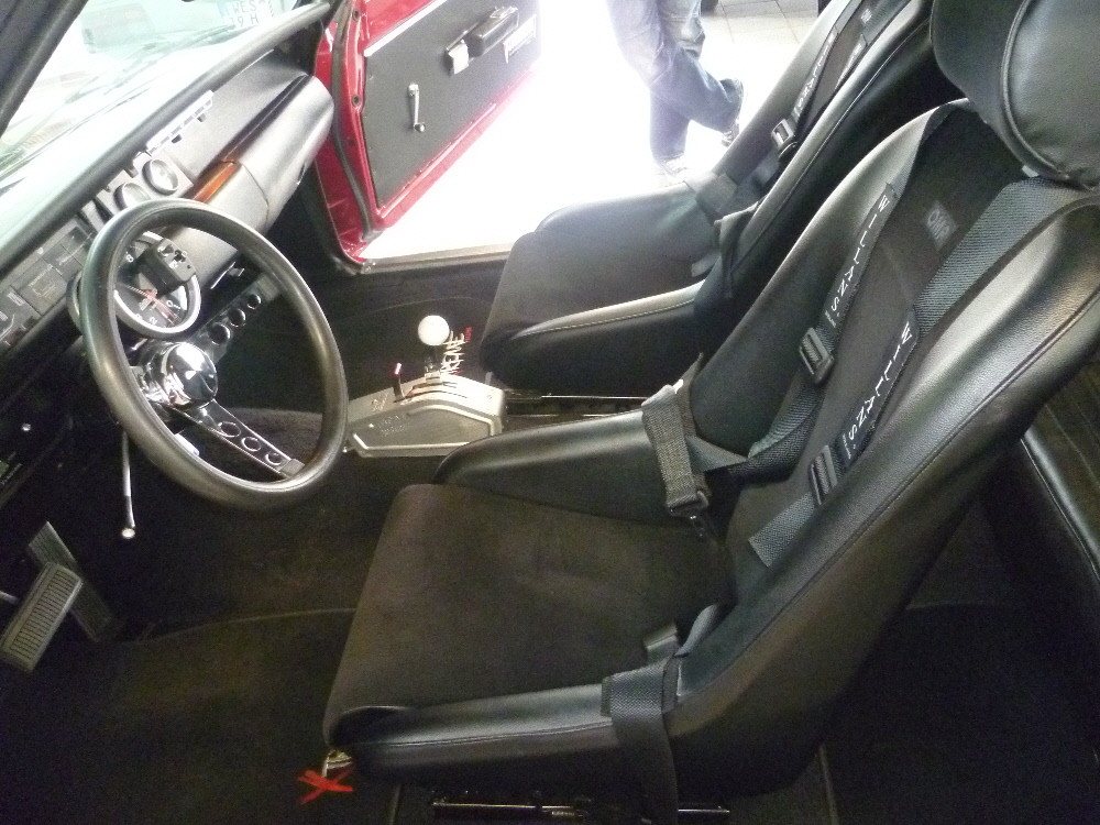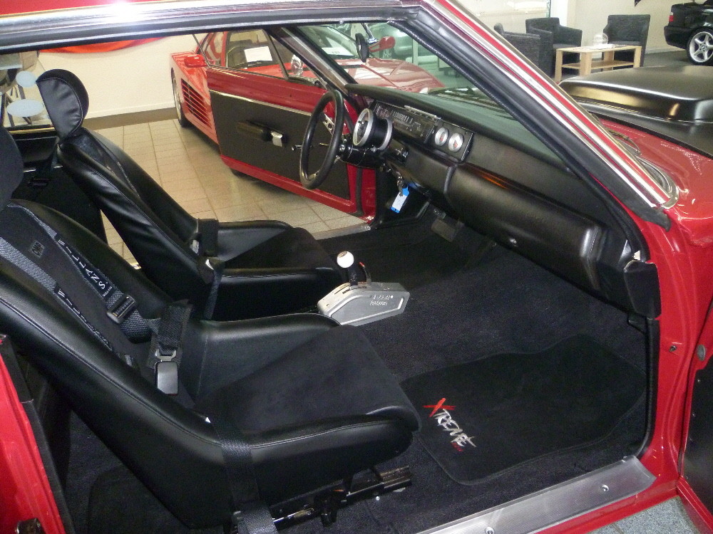 Interieur: Der Innenraum besticht durch sehr guten Zustand und tolle Details. Man nimmt Platz auf OMP Halbschalen inkl. 3-Punkt Gurten, dazu ein Grant Lenkrad, der klassische B&M Shifter und Zusatzinstrumente, die über alle Befindlichkeiten des V8 informieren. Teppiche, Dashboard, Himmel und alles Weitere sind neuwertig. Das ganzheitliche schwarz setzt einen schönen Kontrast zur Außenfarbe.